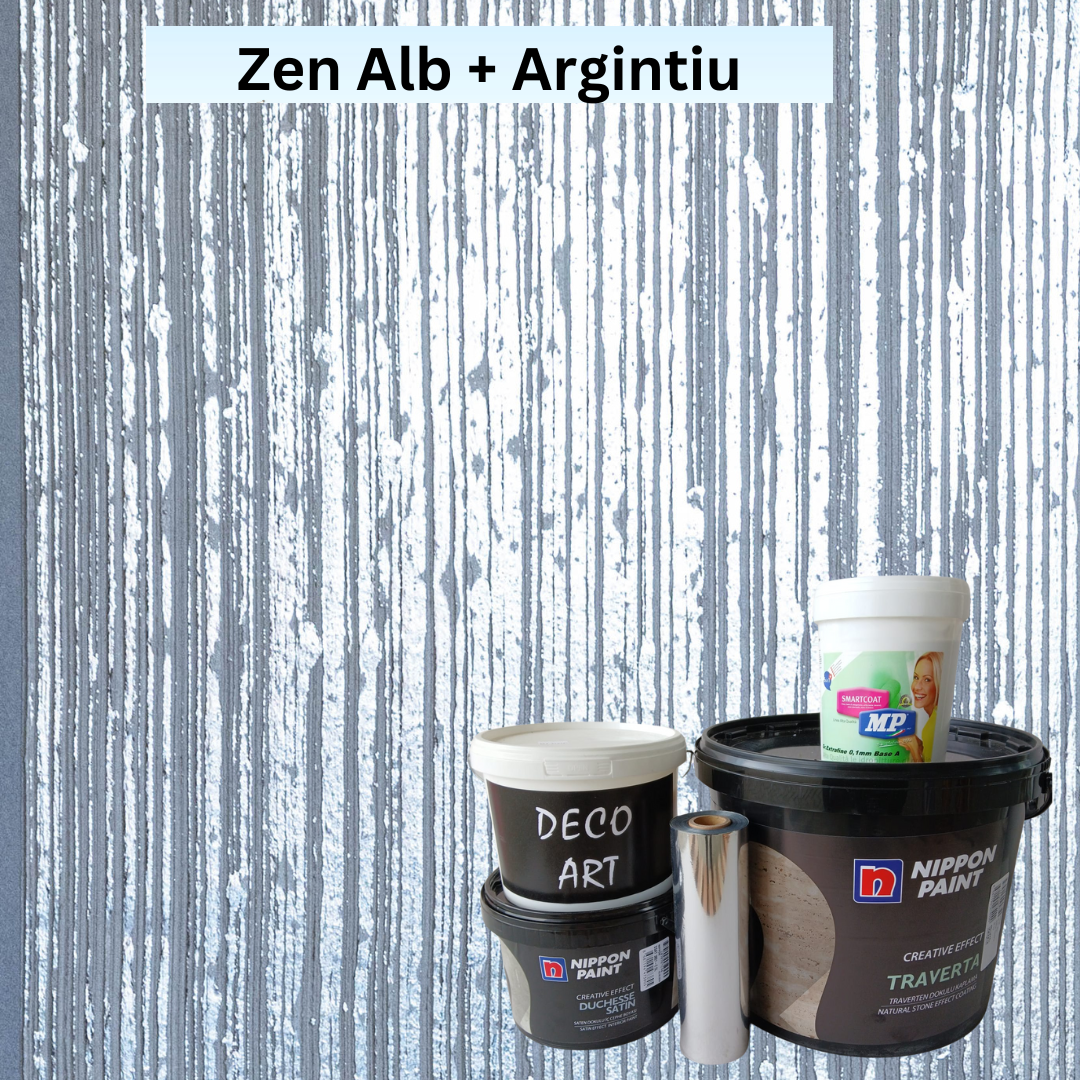 Kit complet pentru Zen - Efect decorativ pt pereti! 12mp Fond Alb Perlat + Foita Argintiu