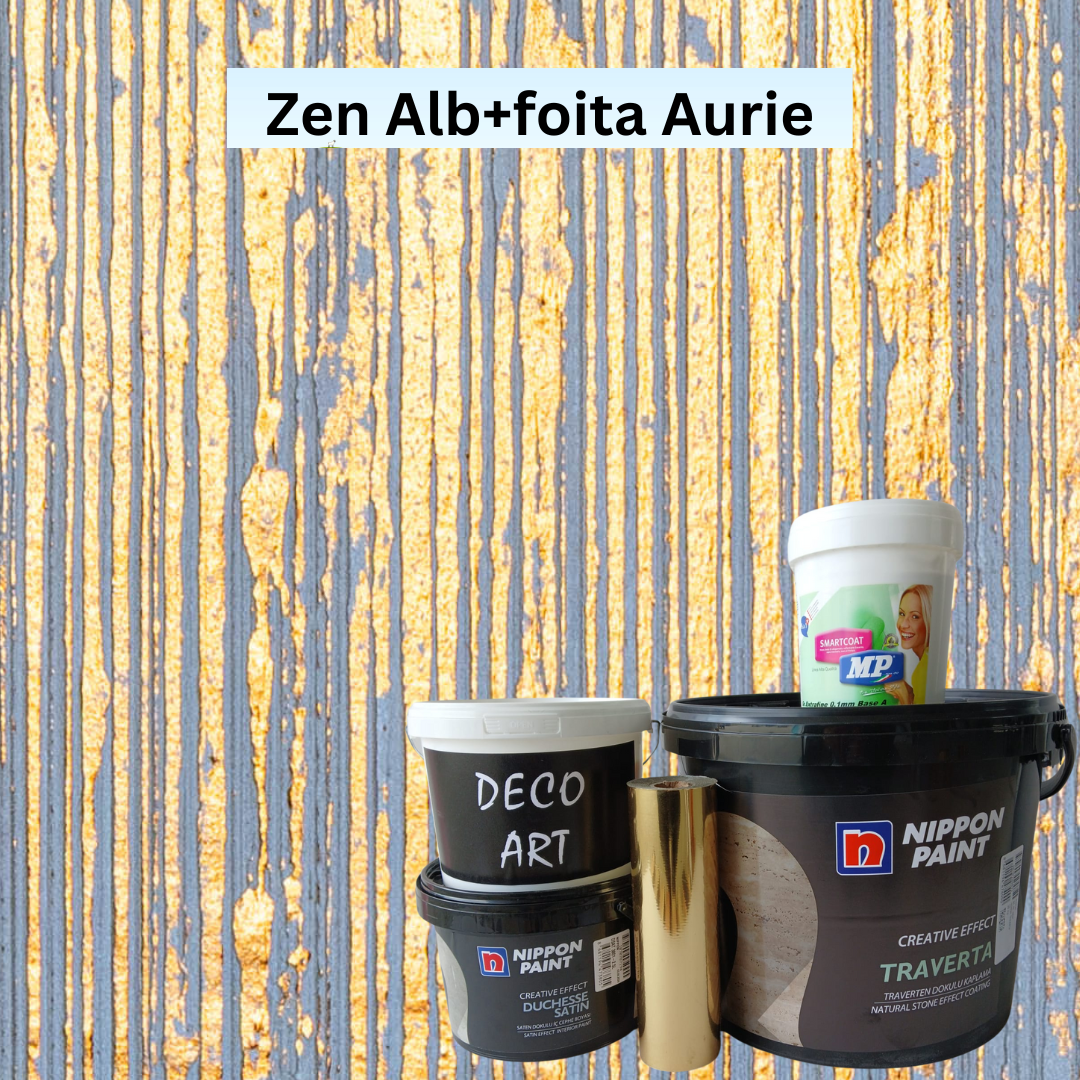 Kit complet pentru Zen - Efect decorativ pt pereti! 12mp Fond Alb Perlat + Foita Auriu