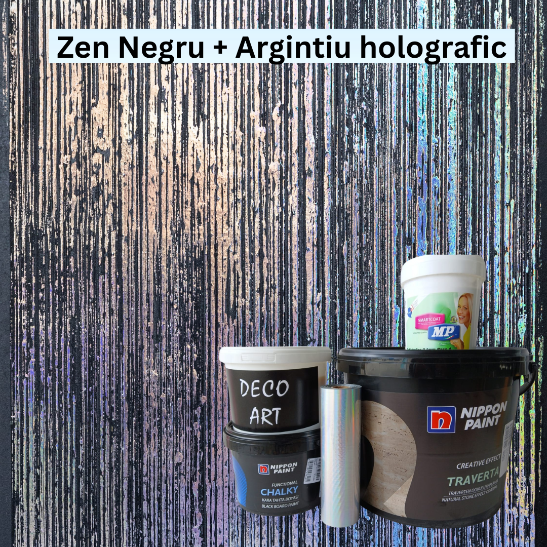 Kit complet pentru Zen - Efect decorativ pt pereti! 12mp Fond Negru + Foita Argintiu Holografic