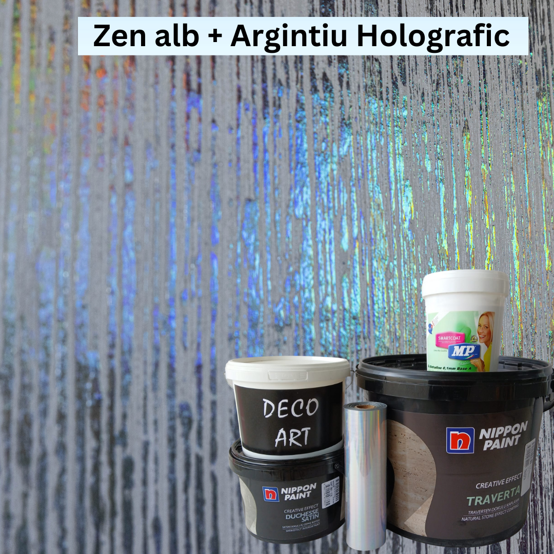 Kit complet pentru Zen - Efect decorativ pt pereti! 12mp Fond Alb Perlat + Foita Argintiu Holografic