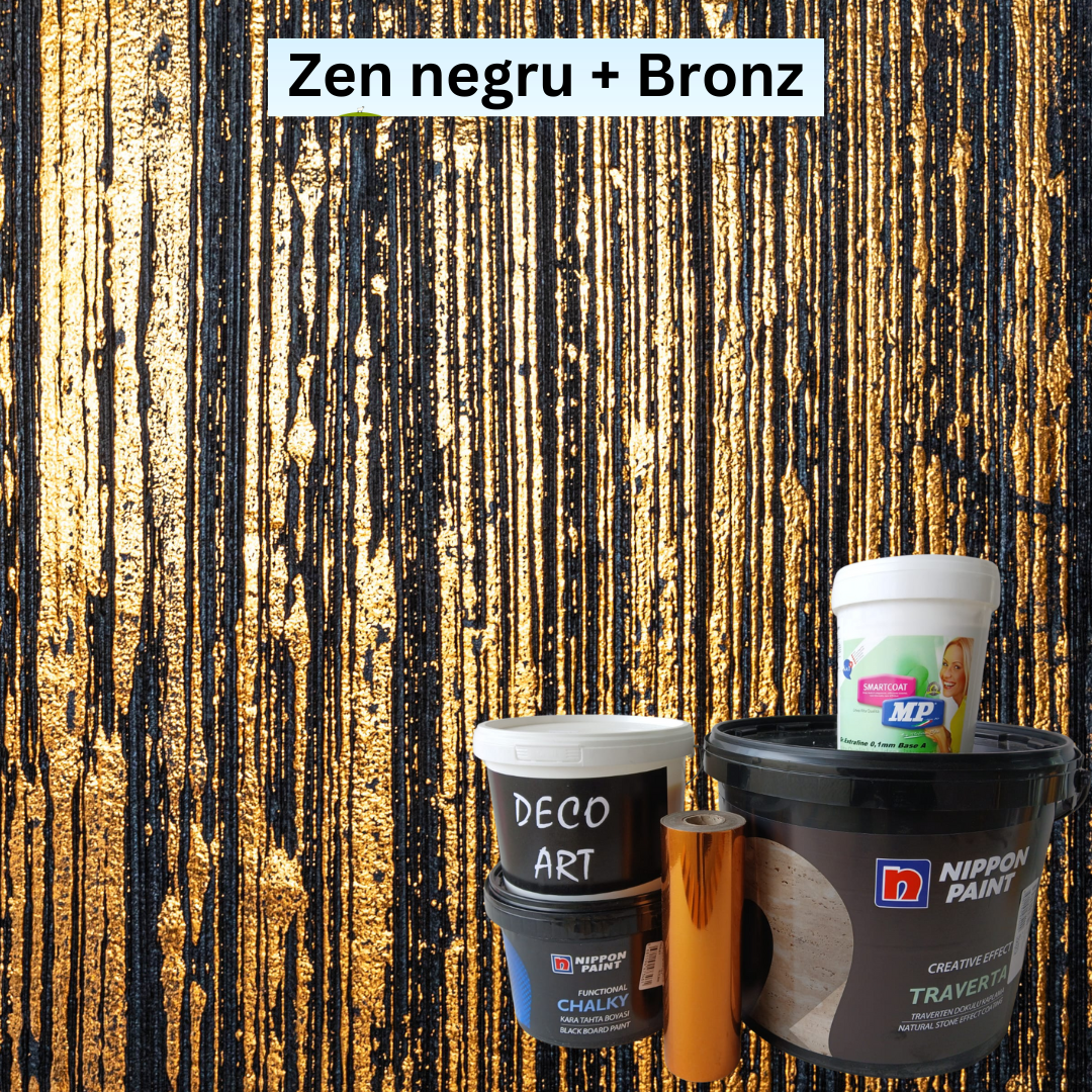Kit complet pentru Zen - Efect decorativ pt pereti! 12mp Fond Negru + Foita Bronz