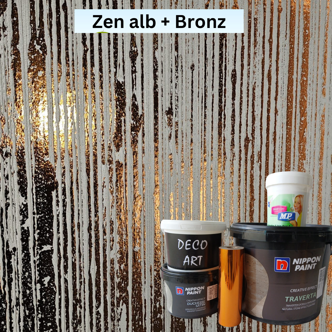 Kit complet pentru Zen - Efect decorativ pt pereti! 12mp Fond Alb Perlat + Foita Bronz