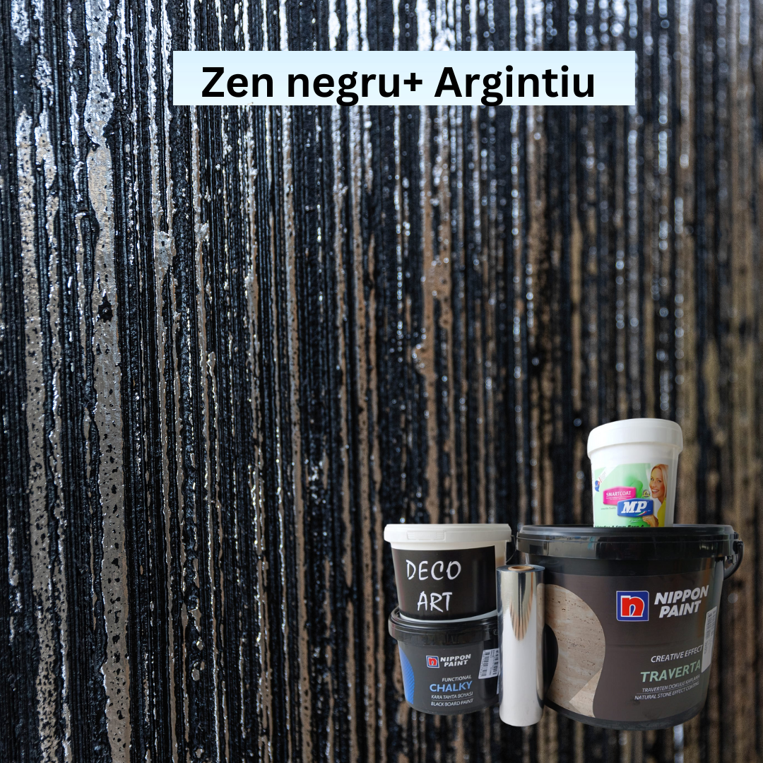 Kit complet pentru Zen - Efect decorativ pt pereti! 12mp Fond Negru + Foita Argintiu